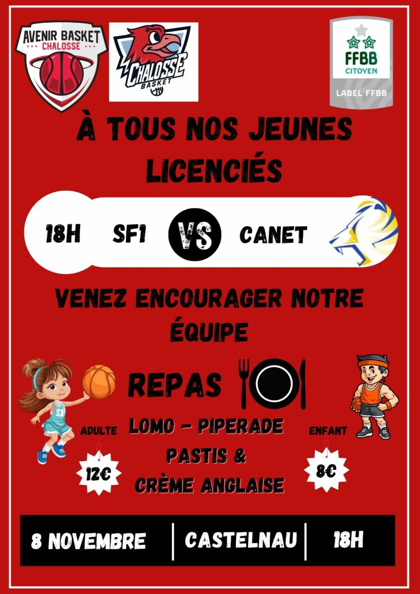 Samedi, à Castelnau Chalosse, les filles 1 accueilleront Canet en Roussillon. Attention, le coup d’envoi de ce match sera donné à 18H et sera suivi d’un repas : Lomo, piperade, pastis, crème anglaise (12 €).