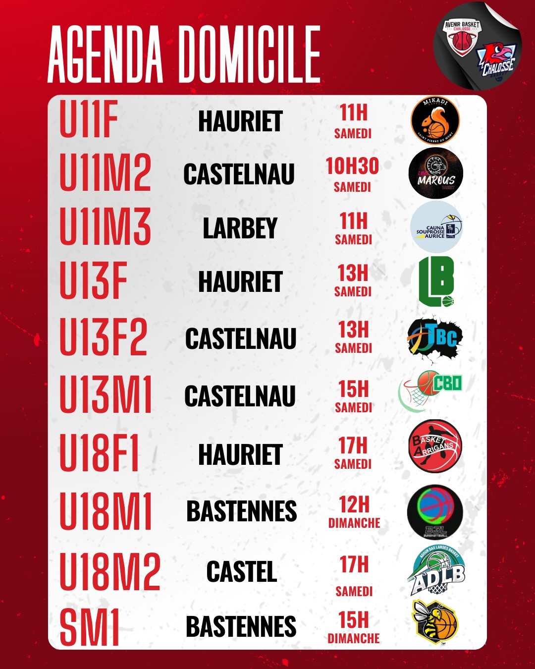 Le planning comprend, bien entendu, diverses rencontres de la CTC Chalosse Basket. A domicile, les salles de Bastennes, Castel Sarrazin, Castelnau Chalosse… vous accueilleront volontiers.