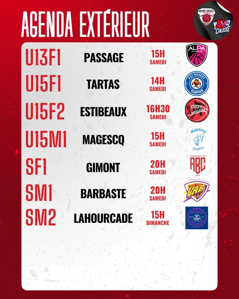 Chez les séniors, les deux équipes 1 évolueront à l’extérieur. Les filles auront fort à faire chez le leader Gimontois alors que les garçons iront défier Val d’Albret. Ces deux matchs se dérouleront, samedi, à 20H.