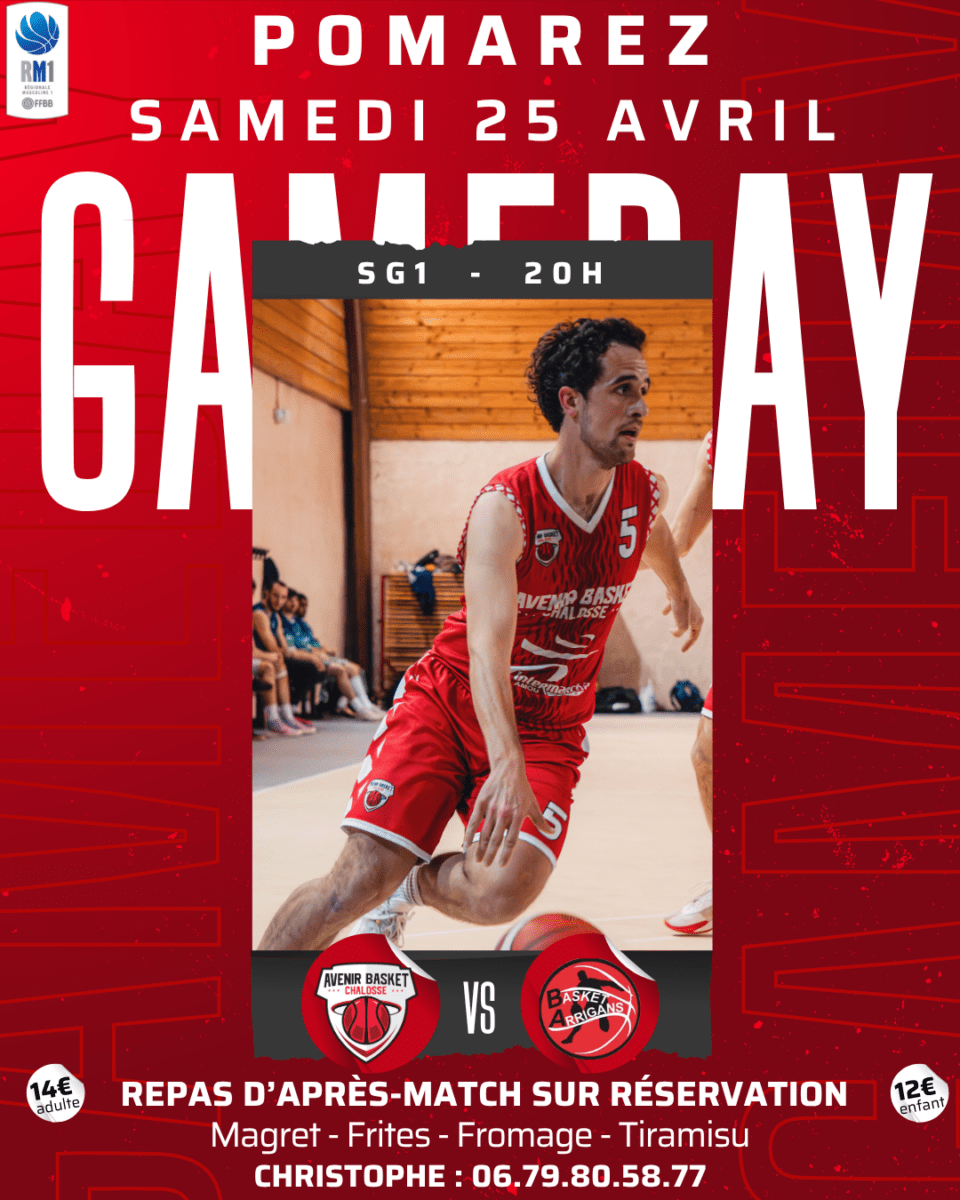 En soirée, on vous attendra à Pomarez pour un grand derby face aux voisins de Basket Arrigans. La rencontre est prometteuse car chacune des deux équipes compte bien se défendre bec et ongles. Le match sera articulé autour de la réception de nos partenaires et mécènes avec un succulent repas de clôture : magret, frites, fromage, tiramisu (14 €).